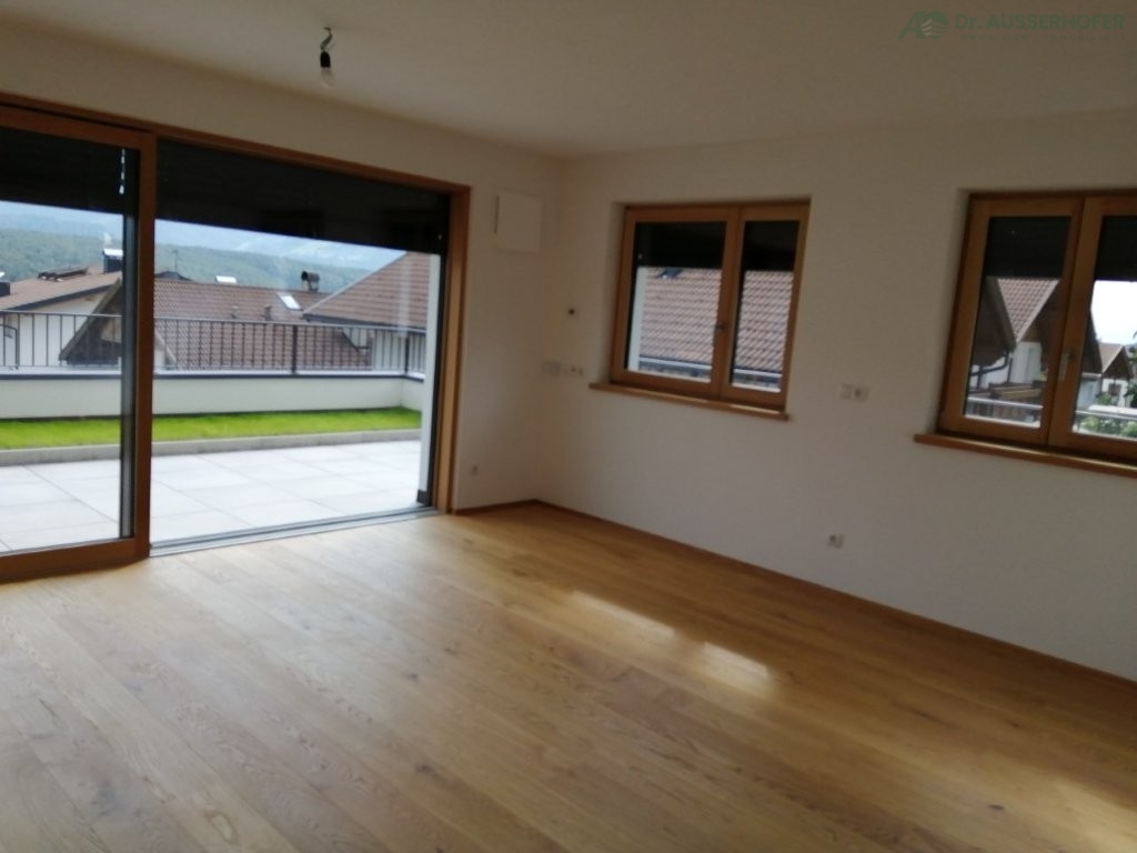 Neuwertige Fünfzimmer-Erdgeschosswohnung mit Rundumgarten in Pfalzen (BZ), Süd-/Westausrichtung, bestehend aus einem Wohnraum/Küche, drei Schlafzimmer, zwei schöne Bäder, 3 Kellerräume und Doppelgarage. Die Küche ist komplett eingerichtet. Monatliche Spesen: ca. 200,00 Euro
