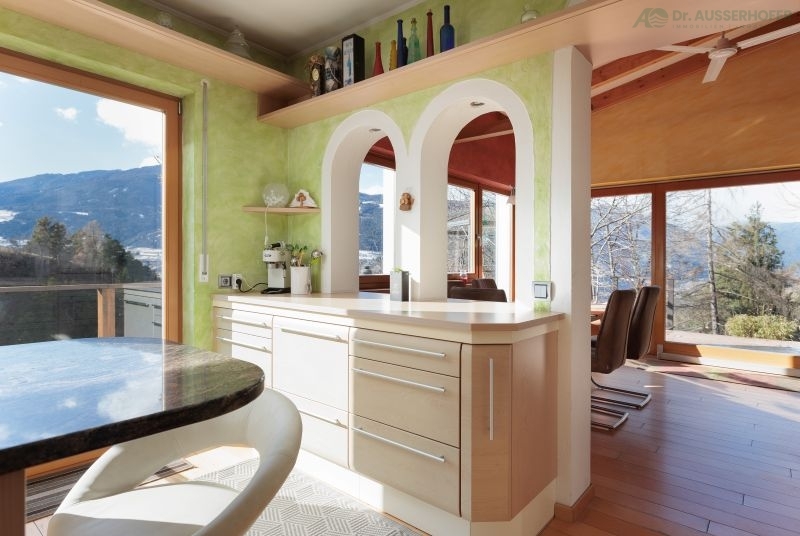 Privatsphäre, Weitblick und alpine Lebensqualität. In sonnenverwöhnter Panoramalage von St. Andrä, unweit des renommierten Ski- und Wandergebiets Plose, erwartet Sie ein Rückzugsort der Extraklasse. Diese außergewöhnliche Villa vereint großzügiges Wohnen mit absoluter Diskretion und einer Aussicht, die ihresgleichen sucht. Die Residenz im Überblick: Herzstück der Villa ist das repräsentative Wohnzimmer im ersten Obergeschoss. Ein traditioneller Kachelofen sorgt für behagliche Wärme, während die darüberliegende Galerieebene – ideal als Bibliothek oder privates Atelier – den Raum nach oben hin öffnet. Eine hochwertige, moderne Küche sowie ein praktisches Tages-WC ergänzen diese Wohnebene. Das Dachgeschoss mit hohen Räumen bietet mit vier großzügigen Schlafzimmern und zwei stilvollen Badezimmern ausreichend Platz. Die separate Einliegerwohnung (Wohnzimmer, Küche, Schlafzimmer, Bad) eignet sich perfekt für Gäste, Personal oder als autarker Arbeitsbereich. Außenanlagen der Superlative: Die weitläufige Terrasse ist eine private Oase. Entspannen Sie im Whirlpool, genießen Sie die Ruhe im Aussichtspavillon oder gärtnern Sie im eigenen Gemüsegarten. Dank der privaten Zufahrtsstraße genießen Sie hier ein Höchstmaß an Ruhe und "Platz zum Atmen". Trotz der idyllischen Abgeschiedenheit ist die Infrastruktur hervorragend angebunden: Brixen Zentrum: ca. 6 km Skigebiet Plose: ca. 3,5 km Autobahnanbindung (Schabs): ca. 13 km Das Untergeschoss bietet zudem funktionale Keller- und Technikräume sowie eine großzügige Garage, die das Angebot abrunden.