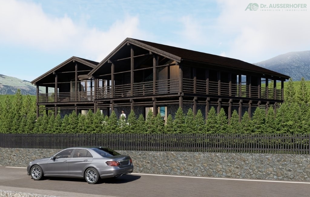 Sie legen Wert auf Ruhe, Exklusivität, Bergblick und eine hochwertige Bauqualität? Dann werden Sie diese Neubau-Chalets im alpinen Style begeistern. In bester Wohnlage In Olang, am Fuße des bekannten Skigebietes KRONPLATZ entstehen zwei Luxus-Chalets in Klimhaus A-Nature. Die Chalets beeindrucken durch ihre hochwertige Bauqualität im traditionellem Stil, kombiniert mit modernen Designelementen und edlen Materialien. Großzügige Fensterfronten sorgen für lichtdurchflutete Räume und eröffnen einen herrlichen Blick auf die umgebende Bergwelt der Dolomiten. Die Chalets erstrecken sich jeweils über zwei Stockwerke sowie ein großzügiges Untergeschoss. Im Erdgeschoss befinden sich je zwei Schlafzimmer mit eigenem Bad/WC. Von hier aus gelangt man direkt auf die großzügige Rundumterrasse sowie in den privaten Gartenbereich. Der erste Stock bildet das Herzstück der Chalets: ein großer, lichtdurchfluteter Wohnbereich mit integrierter Küche, welcher eine gemütliche Wohnatmosphäre schafft. Der umliegende Balkon bietet einen beeindruckenden Panoramablick. Auf dieser Ebene befindet sich zudem ein weiteres Schlafzimmer mit eigenem Bad/WC. Das Untergeschoss bietet zusätzlich Komfort: hier befinden sich eine großzügige Garage mit Platz für bis zu drei Fahrzeugen, eine private Sauna, Fitnessraum, ein stilvoller Weinkeller sowie praktische Nebenräume wie Hauswirtschaftsraum, Technikraum und Keller.